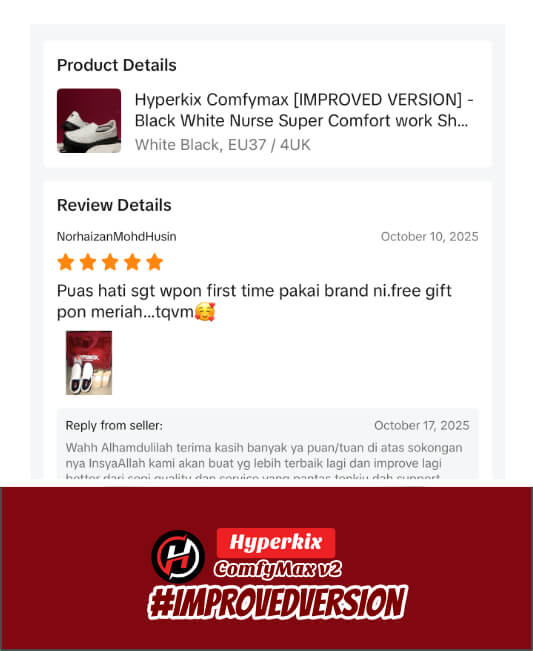 Selepas 2 tahun Hyperkix Comfymax dilancarkan. Kasut ni dah berjaya bantu lebih 6700 kakitangan kesihatan hilangkan masalah sakit kaki semasa bekerja.